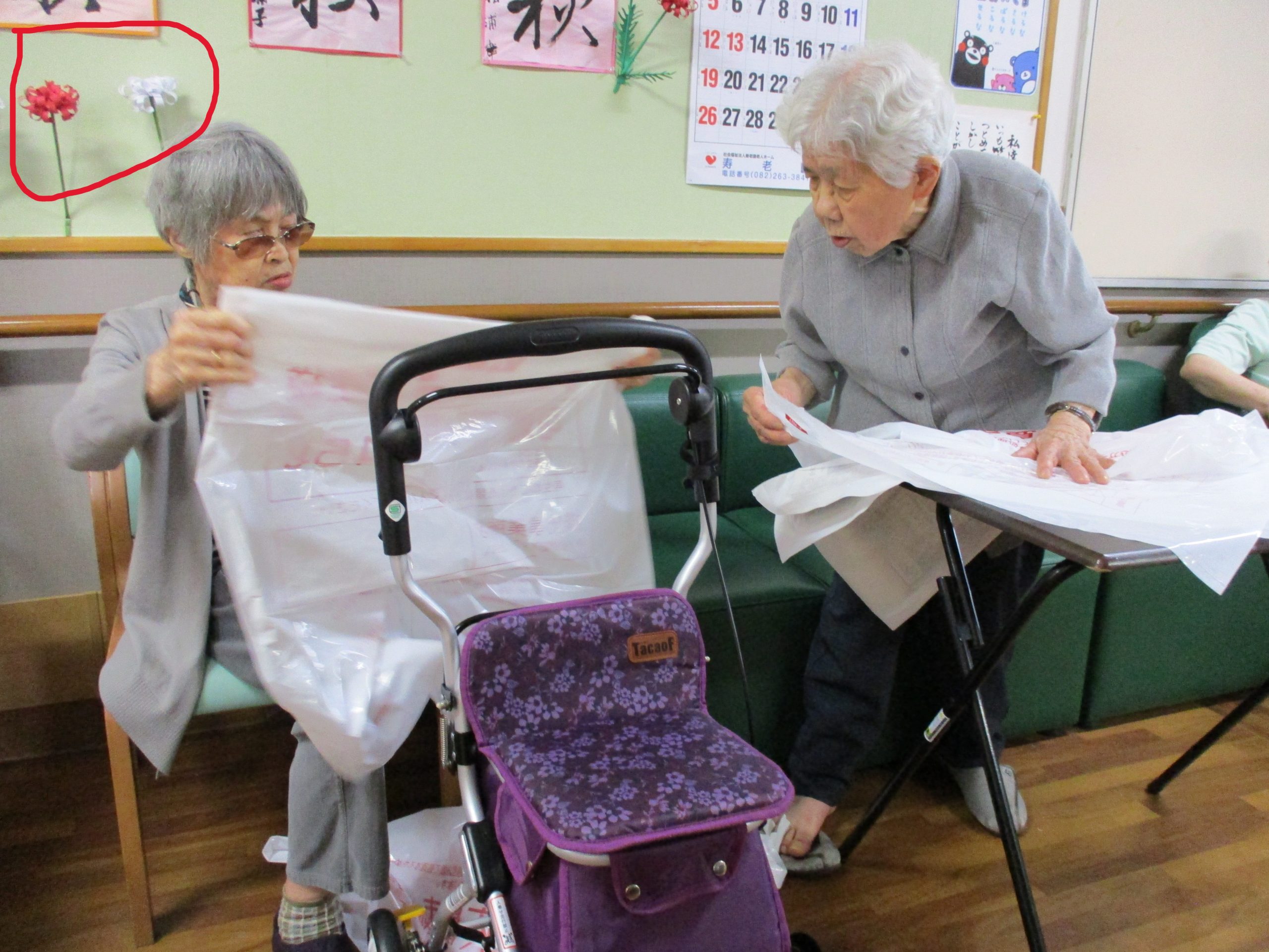 さて今日はご利用者様に、ゴミ袋を使いやすく畳んでもらいまし