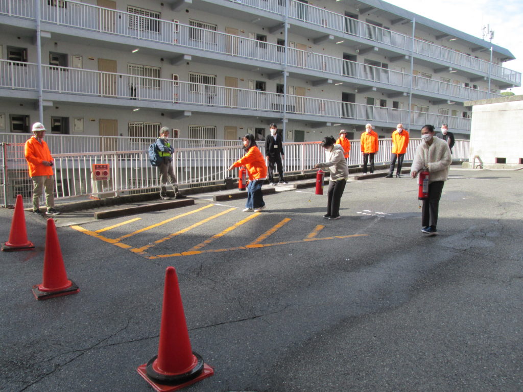 引き続き消火器を使用しての消火訓練の様子です。