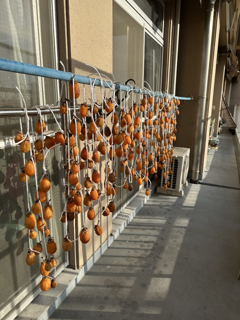 沢山の柿が干されました。あま~い柿が出来ますように!