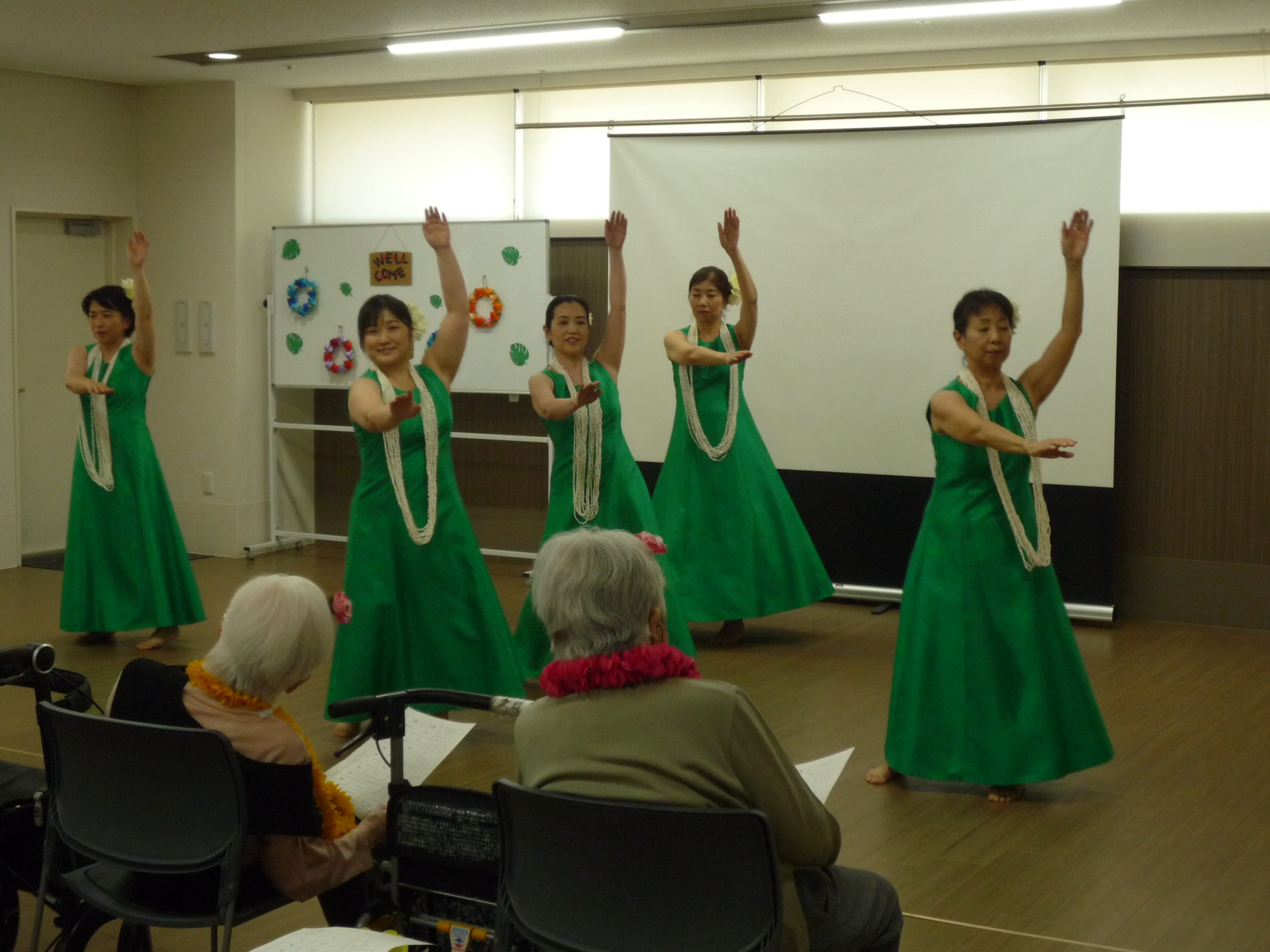 フラダンスボランティアの皆様、素敵な踊りを見る事ができ、入居者の皆様はじめ職員一同感謝しております。ありがとうございました(#^.^#)