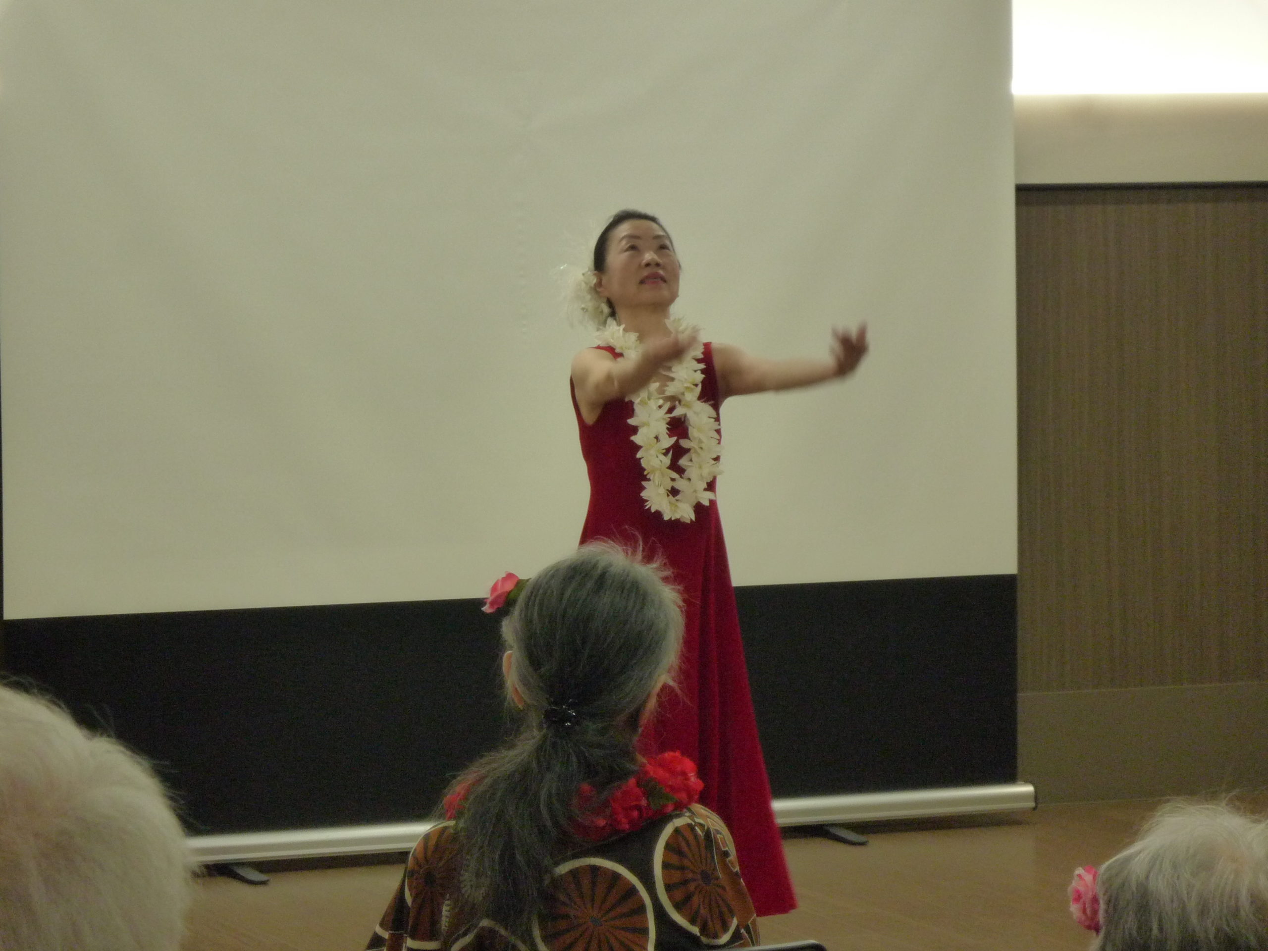 入居者の方も、目の前でフラダンスを観る機会がないので、一緒に踊る方や涙を流される方もおられ、最高の時間になりました。1時間は長いかなと心配して下さっていましたが、アッというまに時間がたっていました!