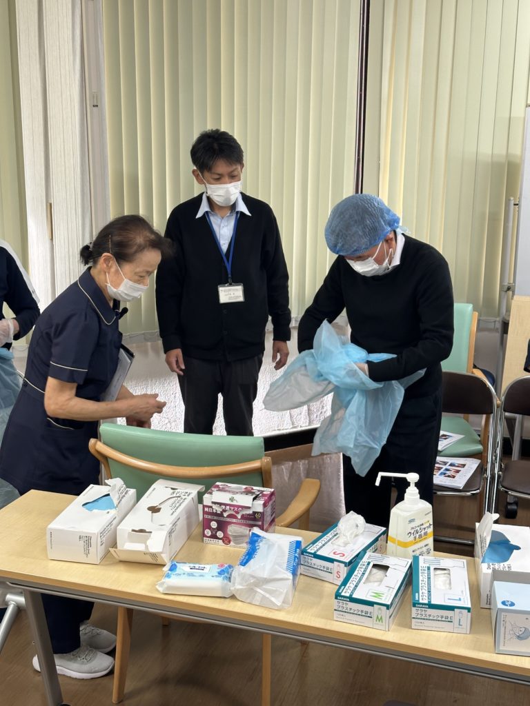 ベテラン看護師によるご指導のもと、介護士・事務職員ともにそのテクニックを学びま