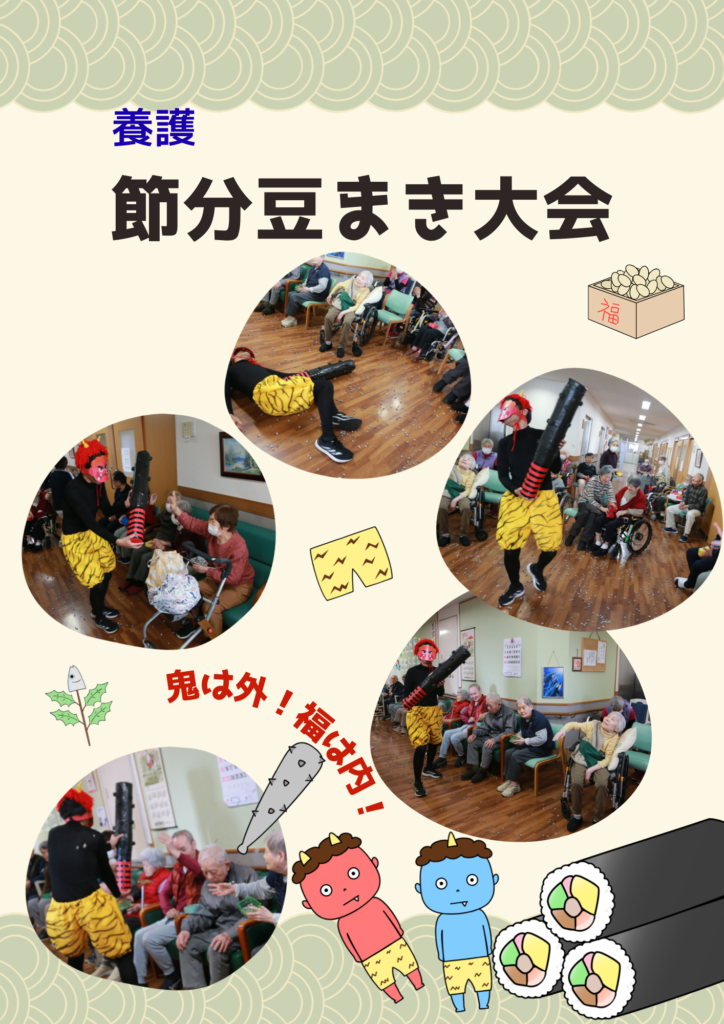 ご利用者さまより「鬼が突然現れびっくりしました😮でも毎年鬼を成敗しているので、今年も落ち着いて倒すことが出来ました!また豆を投げてストレス発散になり、大満足です😄」